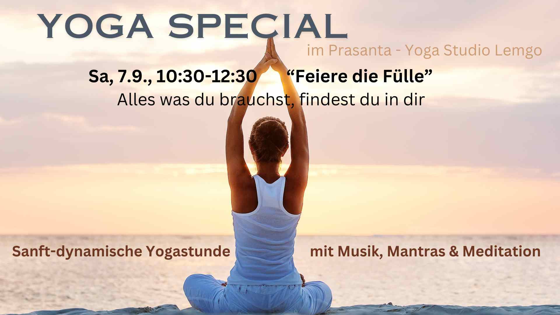 Yoga Special - Feiere die Fülle Sanft-dynamische Yogastunde mit Musik, Mantras und Meditation. Kosten: €25,- Infos & Anmeldung: mail@shankari.de oder WhatsApp 01590/6118596